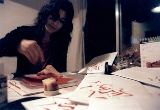 2005 preparando material en el Encuentro Nacional de Mujeres. Mar del Plata (foto GB)