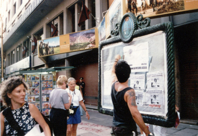 Todo con la misma aguja, acción gráfica/afiche, Buenos Aires.