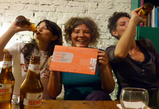 2012 pegatina en Venir al Sur, 1er Encuentro LesBiTrans Feminista de Latinoamérica y el Caribe - con Ivana Otero, Constanza Tabush y Constanza Díaz. Asunción, Paraguay