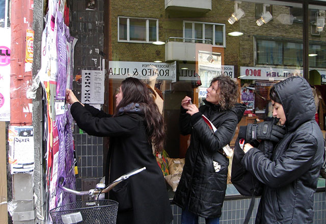 2006 pegando afiches - con Paula Mulinari. Malmö, Suecia