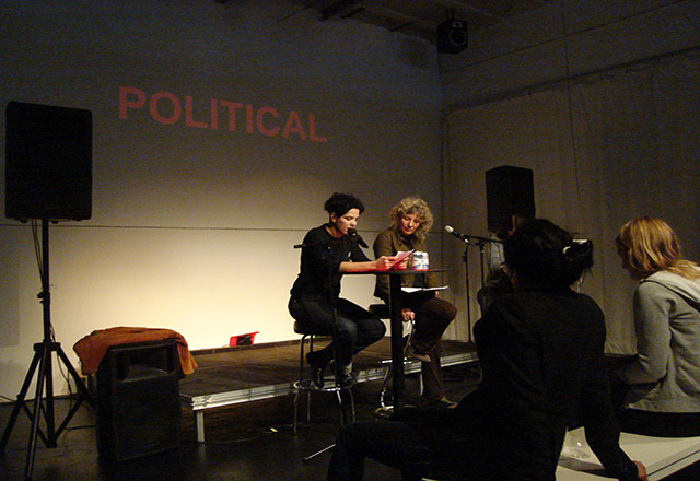Conferencia Mujeres Públicas 2003/2009 en coloquio con Nora Aslan y Catalina Parra. Seminario Arte y Feminismo, Expotrastiendas-Feria de Galerías de Arte, Buenos Aires.
