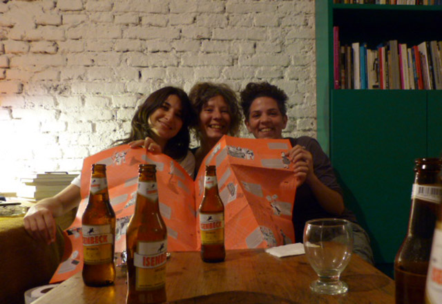 2012 pegatina en Venir al Sur, 1er Encuentro LesBiTrans Feminista de Latinoamérica y el Caribe - con Ivana Otero, Constanza Tabush y Constanza Díaz. Asunción, Paraguay