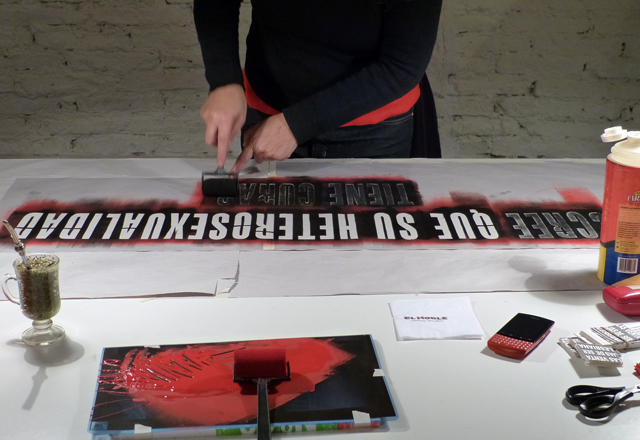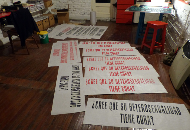 ¿Usted sabe que es la lesbofobia?, acción gráfica/globos de diálogo, Buenos Aires.